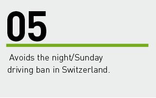The Freiburg – Novara relation takes 10 hours to complete the 414 km trip. It offers space for up to 23 trucks and each week provides 48 services in each direction.